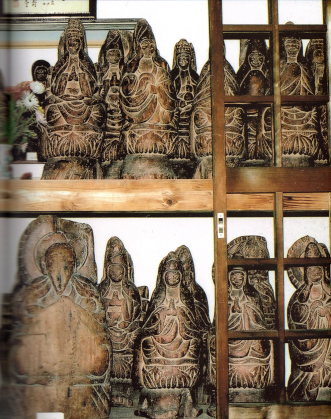 全国に約600体残る木像のうち262体が新潟県に現存し、 二番目に多い静岡県の55体を大きく超えている。とりわけ、 長岡周辺の小栗山木喰観音堂の33体の観音像木喰、 白鳥町・宝生寺の33体の観音像、上前島・金毘経堂の 34体の観音像、この三つの堂をあわせて百観音は、 西国・坂東・秩父の観音霊場の再現を意図したとしか思えません。 その木喰上人の造仏を支えた、青柳興清ほか上前島の人々。 作業場を提供したり、小栗山、白鳥を含め、木材を調達・運搬 したりと、木喰上人の三年に及ぶ上前島逗留生活を支えた。 青柳興清は上人晩年の四年、上人の京での造仏も同行支援。 一部の作には、「加勢 大工興清六十才」などと墨書き。 四年後に上前島に戻るまで、上人の身の回りの世話に 留まらず、木仏の材料の段取りなどをこなし、「共同制作者」 の域に達していたものと思われる。 (前川のあゆみ 同編集委員会2015より) ~ 木喰が60を超える晩年期の作品は、口元に微笑みを浮かべ 優しい表情の「微笑仏」とも言われ、拝観すると自然と心が和み 温かな雰囲気に包まれます。越後逗留時期は、まさに「微笑仏」。 そのような土地が摂田屋の近くにあり、そんな人と支援者達がいた。 美術史・宗教史的にも重要であり、注目していただきたいのです。 ~ ここに何故、一番多いのか。そして、一番、ツルツルなのか。 私見ですが、あこがれの弾誓上人の悟りの地である佐渡に行けず、 では近い越後でということで逗留。そして住んでみて、その自然の 厳しさに触れ、巡礼に行く暇もない民に、西国・坂東・秩父の観音 霊場の再現を意図した。そして、三年の長い逗留で、すっかり仲良 しになった子供たちに、仏像と遊ぶにまかせた。 なにしろ、ツルツルなのは、全国で、ここ上前島だけなのです。 村人の前で、木喰さんの「いいよ、いいよ」の許しがなければ、 こんな毎年の遊びが実現したとは思えないのです。